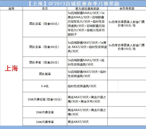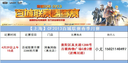 2013CF百城联赛春季赛第二个月的周赛已经结束,本周是赛季第二场月赛,分别为团队月赛和33AK月赛,热爱穿越火线的的CFer们,快快喊上自己的兄弟姐妹们,一起战斗吧!