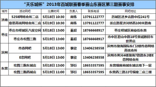“天乐城杯”2013年CF百城联赛春季赛山东赛区本周赛程详细安排: