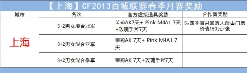 【上海赛区】2013年CF男女5v5混合赛,火爆开启,将从激烈的比赛中出线了6支队伍晋级省赛!还在犹豫什么呢?!展示你的风采,展示你的魅力!