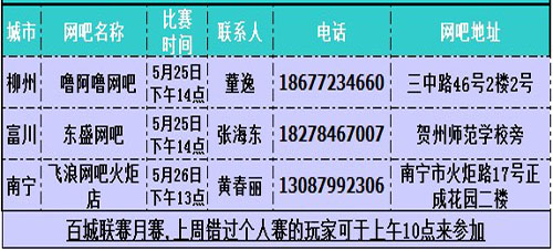 比赛地点及时间:(个人赛玩家请提前电话报名)
