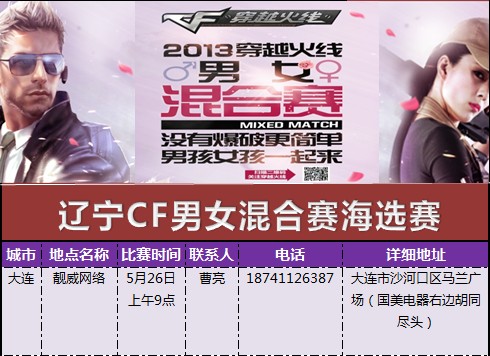 【大连】穿越火线20135V5男女混合赛5月26日火爆开赛!大连地区唯一一场5V5男女混合赛,大连CF巾帼红颜们千万不要错过!