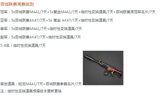 5.玩家在取得百城联赛周冠军之后,不允许再参加本月其他周赛的比赛,特殊情况如战队解散,选手需向当地组委会说明,组委会向该队队长核实情况属实后队员方可参赛,该战队之前获得的周冠军资格自动取消,名额顺延。如解散战队的参赛玩家再次获得周冠军,不再重复发放奖品和虚拟道具。
