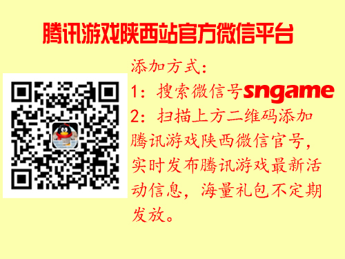 喜欢微博的朋友,赶紧收听“腾讯游戏陕西站(http://t.qq.com/TG-shaanxi)”,每周的活动信息都会在微博上及时发布,让你随时随地可以查看你身边的腾讯游戏活动。