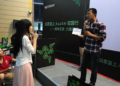 Razer Girl现身校园行现场,向玩家展示了Razer最新外设与现场互动奖品,引起了玩家的热烈响应,大家纷纷拿出自己的手机、相机,拍下这美女与顶级游戏外设的美丽瞬间。