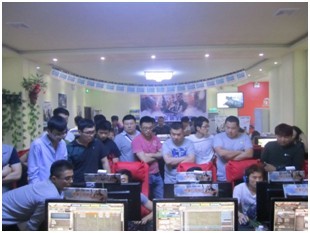 比赛结束后在广大玩家和参加比赛的选手在甲壳虫网络俱乐部门前合影留念