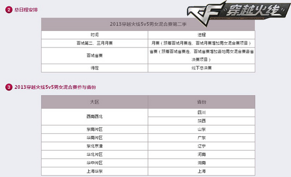 CF男女混合色赛事安排及赛区分布