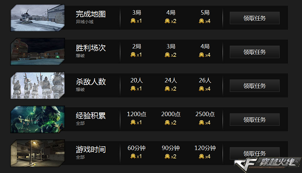 QQ网吧CF任务专区再度降临,任何从QQ网吧中登录的玩家,每天完成不同任务后即可领取徽章奖励,换取海量珍稀道具,赶快行动拥有自己的QQ网吧任务专属道具吧!
