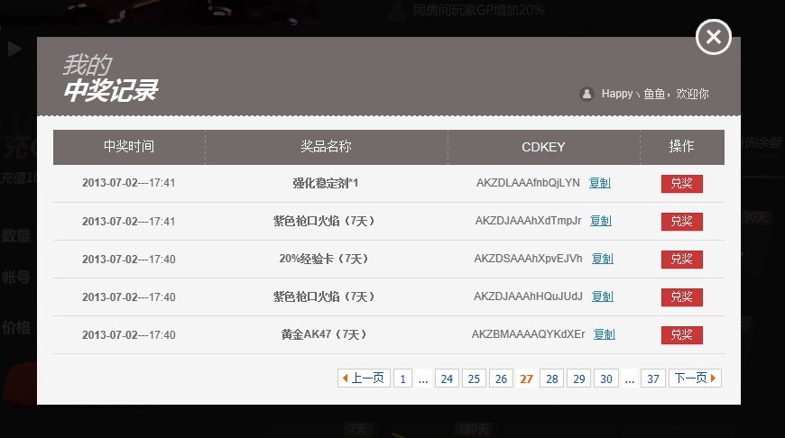 这是我所有的中奖纪录,这泥马这么多都看不过来了