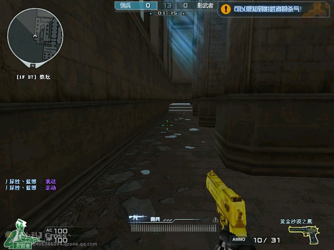 暗影模式[歼灭] 这个暗影歼灭模式,规则就跟幽灵和爆破模式差不多,最大的区别就是不用安装C4。只要消灭对方全部敌人获胜。要是被杀死只能等下局复活咯。 暗影模式添加了许多能够发现影武者的装置,红外线,喷水器,扫描仪,玻璃碎片。以及能够感受到影武者的杀气。保卫者可以利用这一些
