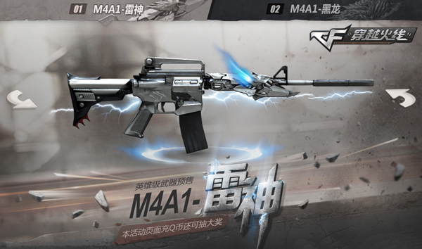CF英雄级武器再添新丁,M4A1-雷神、M4A1-黑龙正式开启预售,喜欢CF英雄级武器的玩家,千万不可错过。