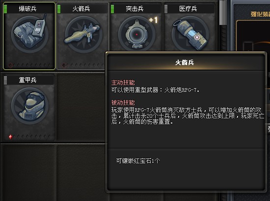 主动技能:可以使用RPG-7火箭筒,对敌人造成大量伤害。
