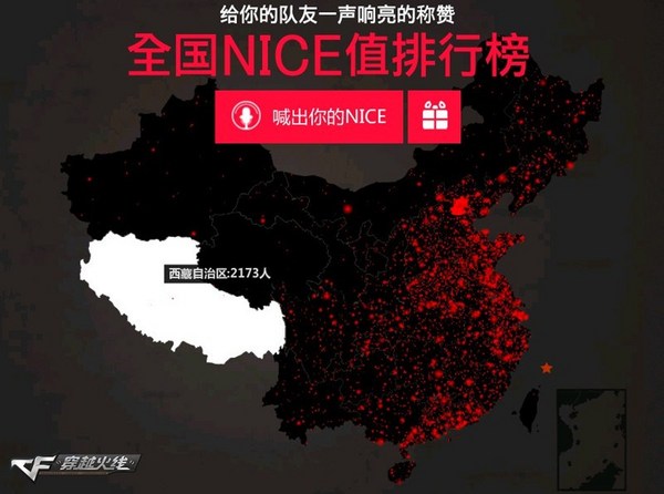 一句简单的“NICE”,却有着丰富的内涵,这既是玩家们对自己火线征程的肯定,也是对战友兄弟的赞美。在本次“穿越火线NICE”的活动中,玩家们对着麦克风大声喊出NICE,并分享到社交平台,和万千CFer一起感受激情的火线氛围。同时在活动页面还有“全国NICE值排行榜”,到底哪个省市拥有最多的“NICE声”,让我们拭目以待!