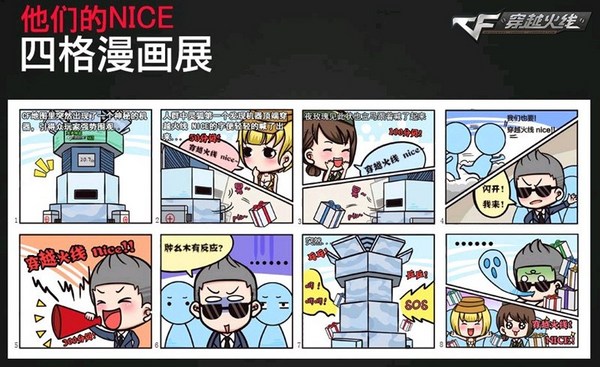 在“穿越火线NICE”的页面中,活动还发布了“穿越火线NICE”主题漫画让大家欣赏。Q版人物角色、搞笑的故事情节再加上幽默的文字语言,不仅让大家感觉“穿越火线NICE”的氛围已经蔓延到整个火线世界,并同时将欢笑带给每一位火线玩家。