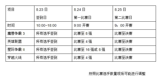 所有比赛项目的签到时间都在8月23日10:00~18:00进行现场签到,需要带本人***。