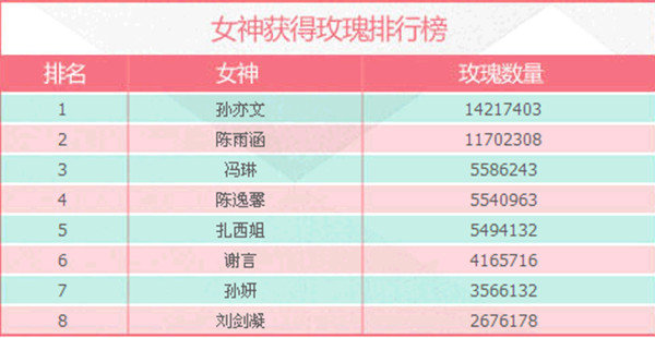 在欣赏精彩节目的同时,大量的玩家通过活动页面对心仪的女神送上玫瑰,表达爱意。表现出色的孙亦文赢得了广大玩家的喜爱,凭借1400多万的玫瑰数量力压群芳夺得头名,CF“花魁”称号,实至名归。
