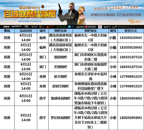 近期赛点城市分别为:九月份:福州、厦门、泉州、南平十月份:福州、莆田、龙岩、漳州