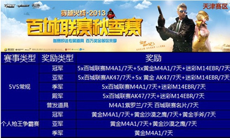 2013CF百城联赛秋季赛天津赛区的比赛将在本周末拉开战幕,比赛将分为常规5V5团队赛和个人枪王争霸赛。万众瞩目下,选手们,为了个人与团队的荣誉而战