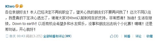 AG.Pepsi阵容调整 老将Ktwo王宗涛退役