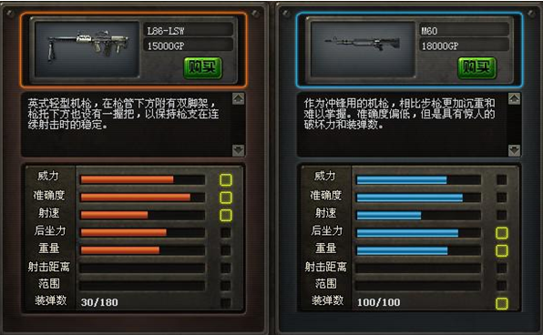 第二款GP点机枪,相当变态的一款枪!换弹速度极快,较高的射速可以弥补一梭弹夹只有30发的缺憾;强身重量很轻,移动作战灵活,有兴趣的可以当成步枪体会下实战效果;有前置双脚架,后坐极小,稳定性非常高;GP点够的都应该去体验下这款枪,非常值得推荐!