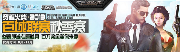 CF2013百城联赛秋季赛,自8月开始将进行至11月。全国10大片区28个省市赛区,陆续上演为期三个月的精彩赛事。经历海选赛、省赛的战火洗礼,全国将产生共28支队伍,最终将在TGA的总决赛上,为玩家们献上最后的巅峰对决。