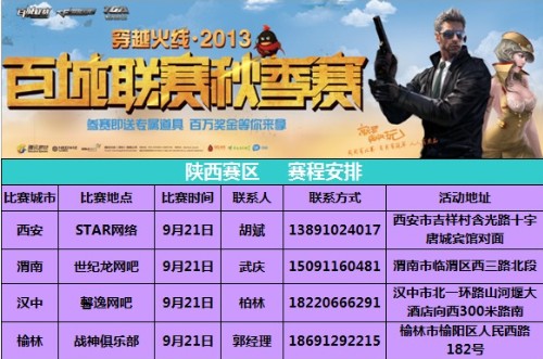 2013年9月21日,西安,渭南,汉中,榆林四地开战穿越火线百城联赛秋季赛首场月赛!奖励多多,惊喜多多!