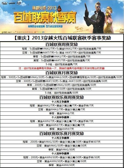 CF百城联赛秋季赛重庆赛区经过四大赛区的两周海选,终于在本周迎来第一场月赛,所有周冠军汇聚一堂,高手对决胜负毫厘,谁会夺的月赛冠军?谁又会把奖金,礼品带回家呢?敬请期待本周精彩赛事!