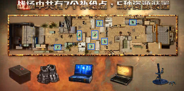 初见这张地图,相信玩家的第一印象就是“黄土高坡”“荒芜沙漠”。然而这里却拥有高科技的军事设施,现代化的训练场,数量庞大的重型军火。而在静谧的环境下,暗藏着杀机,随处可见被战争破坏的建筑物,血腥的战争将会在这里展开。在地图**有7个补给点,还设置了空袭控制台、固定火炮等5种资源装置,充分利用可大大增强战斗力。