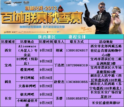 2013百城联赛秋季赛开赛了,陕西的玩家你们准备好了吗?那就别在犹豫了,擦亮手中的枪支,赶紧来参加百城联赛秋季赛吧