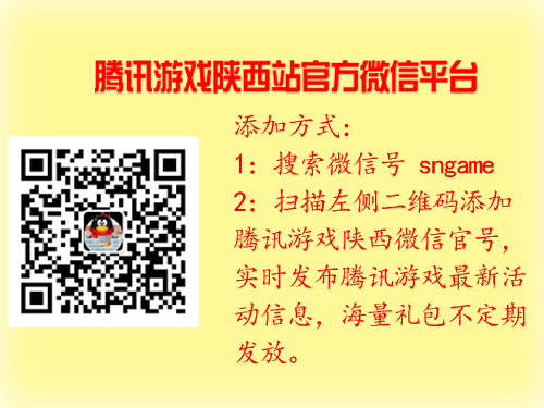 喜欢微博的朋友,赶紧收听“腾讯游戏陕西站(http://t.qq.com/TG-shaanxi)”,每周的活动信息都会在微博上及时发布,让你随时随地可以查看你身边的腾讯游戏活动。