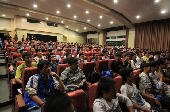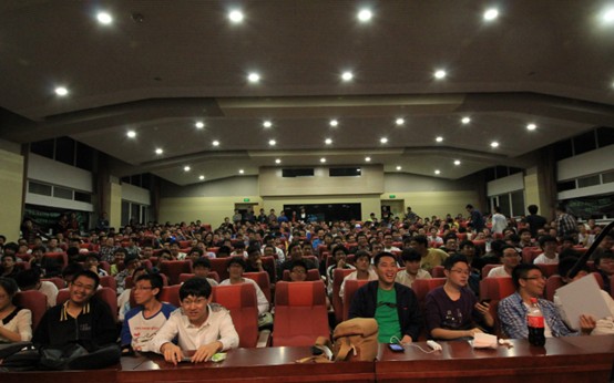 爆满的活动现场!晚到的小伙伴已经没有位子坐了,只好站着观战了!我们的校园行每场都是很火爆滴~下次记得来早一点哦~