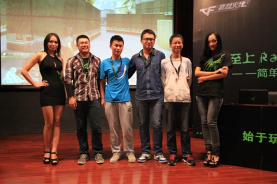 KK邀请四位现场玩家上台进行CF挑战赛,一听获胜者奖品是Razer金环蛇鼠标一枚,现场小伙伴争先恐后参加,可惜的是,四位小伙伴都没能获胜,只能遗憾的带走了一份纪念奖T.T下次努力吧~骚年们