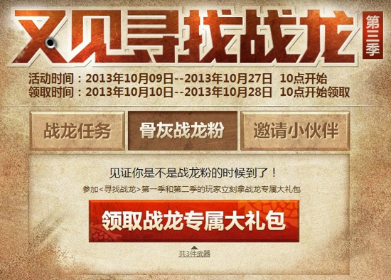 领取时间:2013年10月10日--2013年10月28日 10点开始领取