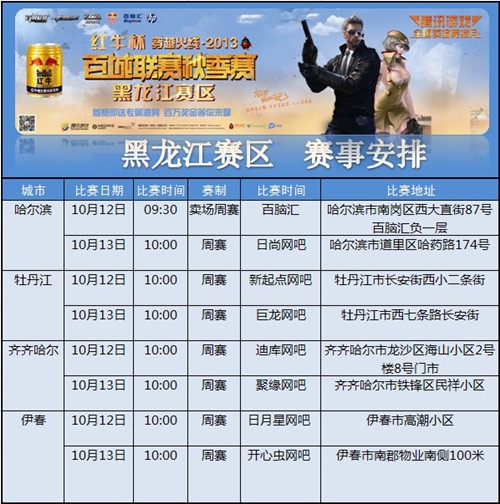 红牛杯穿越火线百城联赛秋季赛黑龙江赛区本周周赛火热持续中,四大赛区精彩赛事等你迎战,卖场竞技月活动依旧激烈进行!召集队友参加吧,参赛即送百城联赛名片,还有更多CF定制道具等你赢,我们在现场期待你的加入!