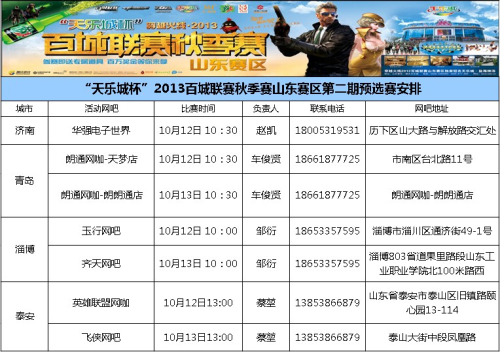 “天乐城杯”2013年CF百城联赛秋季赛山东赛区本周赛程详细安排:
