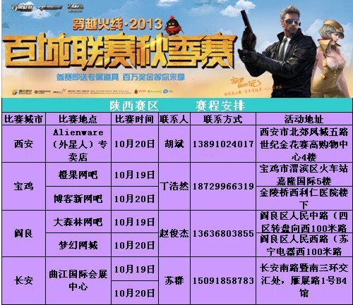2013年10月19日至10月20日,西安,宝鸡,阎良,长安四地开战穿越火线百城联赛秋季赛10月第3周赛事!奖励多多,惊喜多多!
