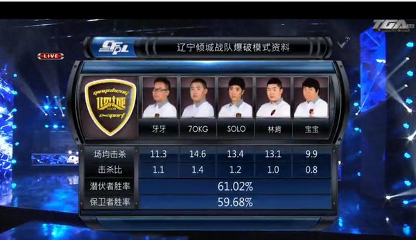 辽宁倾城队员:牙牙、70KG、SOLO、林肯、宝宝