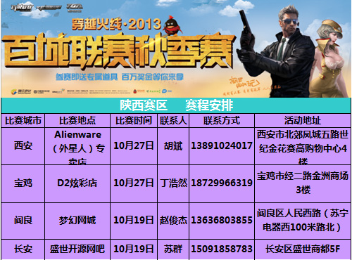 2013年10月26日至10月27日,西安,宝鸡,阎良,长安四地开战穿越火线百城联赛秋季赛10月月赛!奖励多多,惊喜多多!