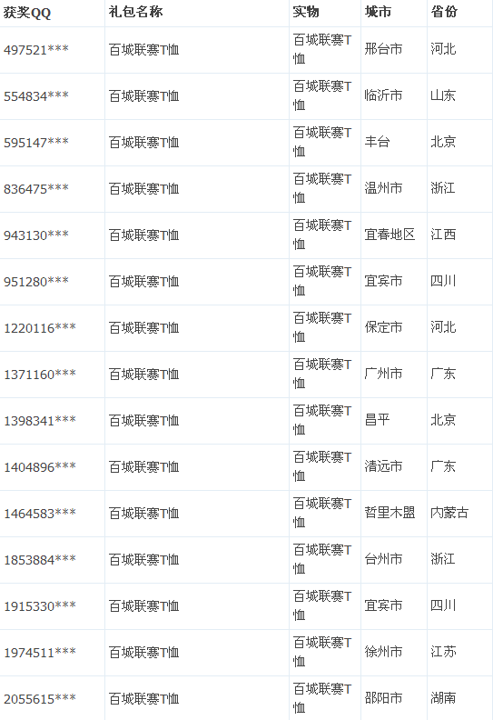 CF10月周末痛快玩活动实物奖励获奖名单