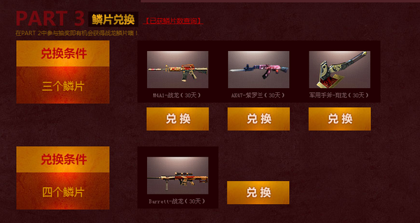 任务三:鳞片兑换--在任务二中参与抽奖即有机会获得战龙鳞片,即可兑换极品道具30天。