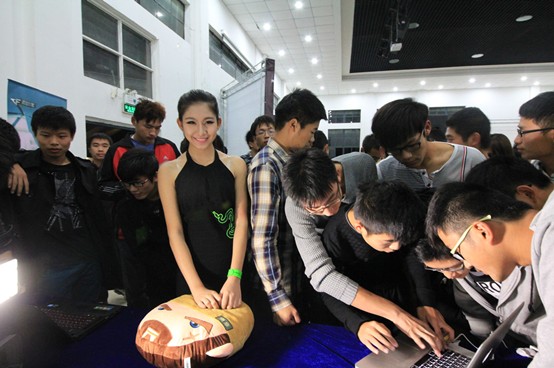 嘉宾水友赛环节小伙伴一拥而上各种围观!美丽的Razer Showgirl在人群里对我们的摄影师甜美一笑。