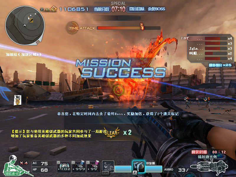 接下来就是打天使了,天使一下了5个人就围着他喷(建议用喷子)他开始放抓人技能时,赶紧让他抓,因为第一个技能飞来飞去打不着,还浪费时间,抓人技能一共放2次,这个要速度结束,接下来会刷新特殊武器,疾冻激光炮很好命中,有就捡起来打就行,不过火箭和弩比较难命中,这就有要求了,火箭和弩基本上要命中才行,最多每次只能有1发没命中,不然基本不能刷2标记,记住捡到了别马上放,等天使放旋转技能或者被激光炮减速时靠近打,基本上是百分百命中,而且第一发打中了后面几发都能中(建议让满血的捡特殊武器,别刚刚捡到就死了)如果没信心命中的,就让队友捡,这是要团队合作的,不是抢东西,其他的队友就追着天使使劲喷,当天使放旋转技能时,全都在他下面,顺着技能的方向围着天使转,这样能少挨1-2下,千万别去四周和用滑步躲避,这样肯定不能打2标记(如果有疾爆或黄金手雷的,复活了就炸天使)基本上我们都在天使放核弹之前把它秒了,天使一般在7分钟开始放核弹的。