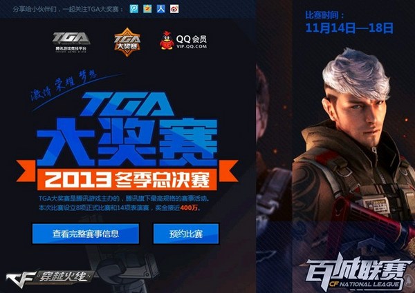 TGA大奖赛CF项目(百城联赛总决赛)直播链接:http://tga.qq.com/2013winter/cf.shtml