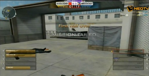 下半场的比赛倾城作为潜伏虽然打得比较保守,但是却也是战术过人,MSI拿到了赛点取9分后依然不屈不挠的连拿4分,一路气势高涨,让MSI有点吃不消。但是这时MSI作为保卫的一个A平台突起,给倾城打了一个出其不意,倾城五人同时被击杀,第一张地图10比7结束。