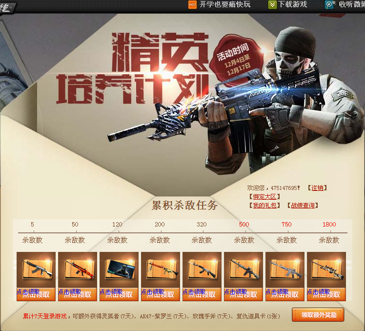 4活动期间,总累计7天登录游戏后,日次可以直接领取额外套装,每个QQ号仅限领取一次。
