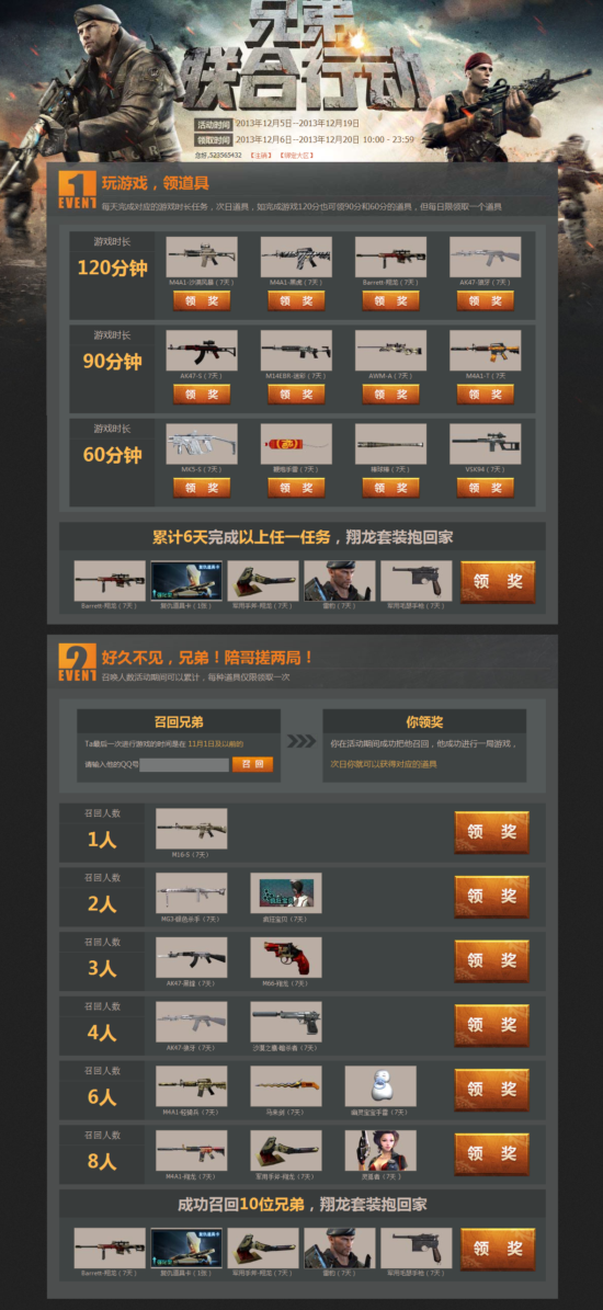 CF兄弟联合活动:召兄弟 常在线 领道具