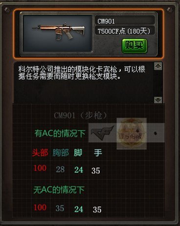 玩家点评:武器威力的确大,近距离无视AC爆头,与著名的AK系列相差无几,但是后坐力也大,这需要一个非常会压枪的玩家使用,压枪压好了,拿ACE那都不是事儿。