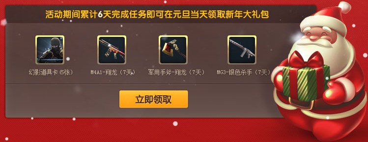 4. 活动期间(不包括元旦当天),只要累计6天完成任务即可在元旦当天领取新年大礼包;