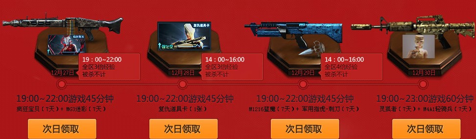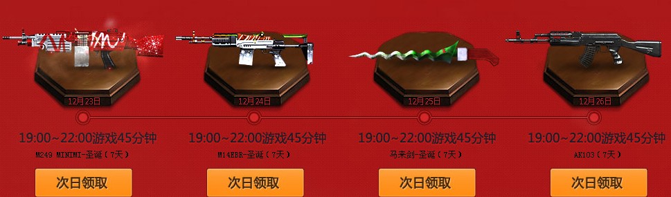 圣诞元旦,天天都狂欢,玩家每天在规定时间完成游戏时长任务可领取对应道具