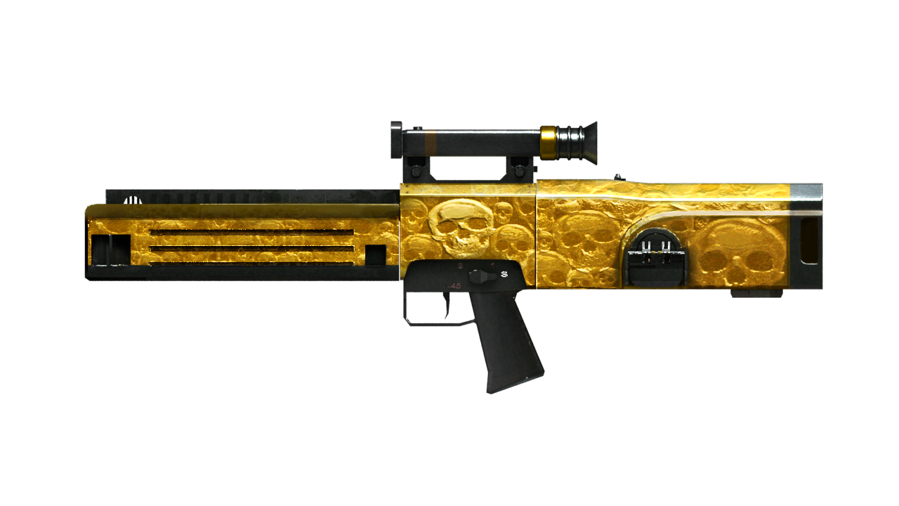 武器点评:G11的全新暗金色皮肤,金色的骷髅图案让人感觉不寒而栗。G11的射速奇快并且子弹数较多,可以胜任各个模式。