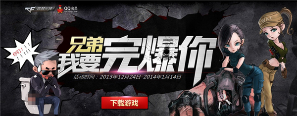 年末将至,《穿越火线》继“双旦之战”活动上线之后,再度推出重磅活动“兄弟我要完爆你”;2013年12月24日至2014年1月14日玩家只要完成PK任务即可抽取礼包。与好友PK,在火线世界尽情角逐,让这个冬天不再那么寒冷!